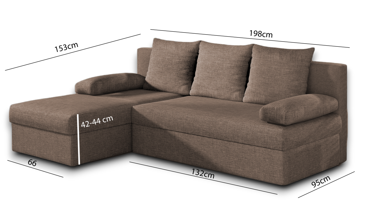 sarokkanapékhoz általában a tágas bútorok társulnak, amelyek sok helyet foglalnak el. Letisztult kialakításának köszönhetően a Gino sarokkanapé könnyedén beilleszthető tágas nappaliba és kis stúdiólakásba is. A 197x152x82 cm-es méretek sok helyet biztosítanak a pihenéshez és egyben kedvező elhelyezést tesznek lehetővé anélkül, hogy sok helyet kellene igénybe venni a lakásban. További előny, amelyet a kis lakások tulajdonosai minden bizonnyal értékelni fognak, az a tény, hogy a Gino sarokkanapé alvó funkcióval rendelkezik. Kibontás után egy 197x140 cm méretű ágyat és egy tágas tárolórekeszt kap a felhasználó.